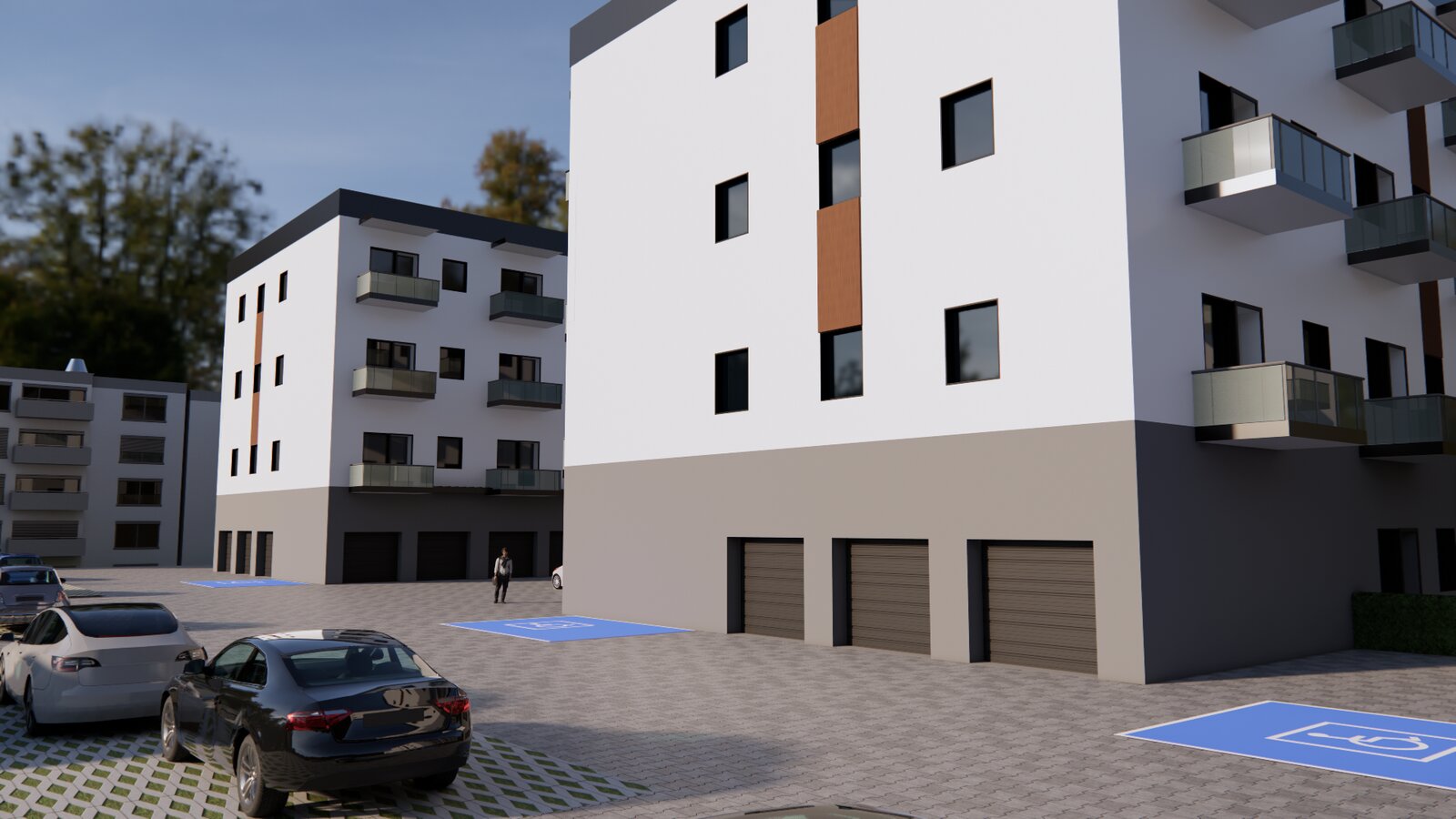- Budynki ze skrytkami lokatorskimi, garażami oraz pomieszczeniem rowerowni/wózkarni