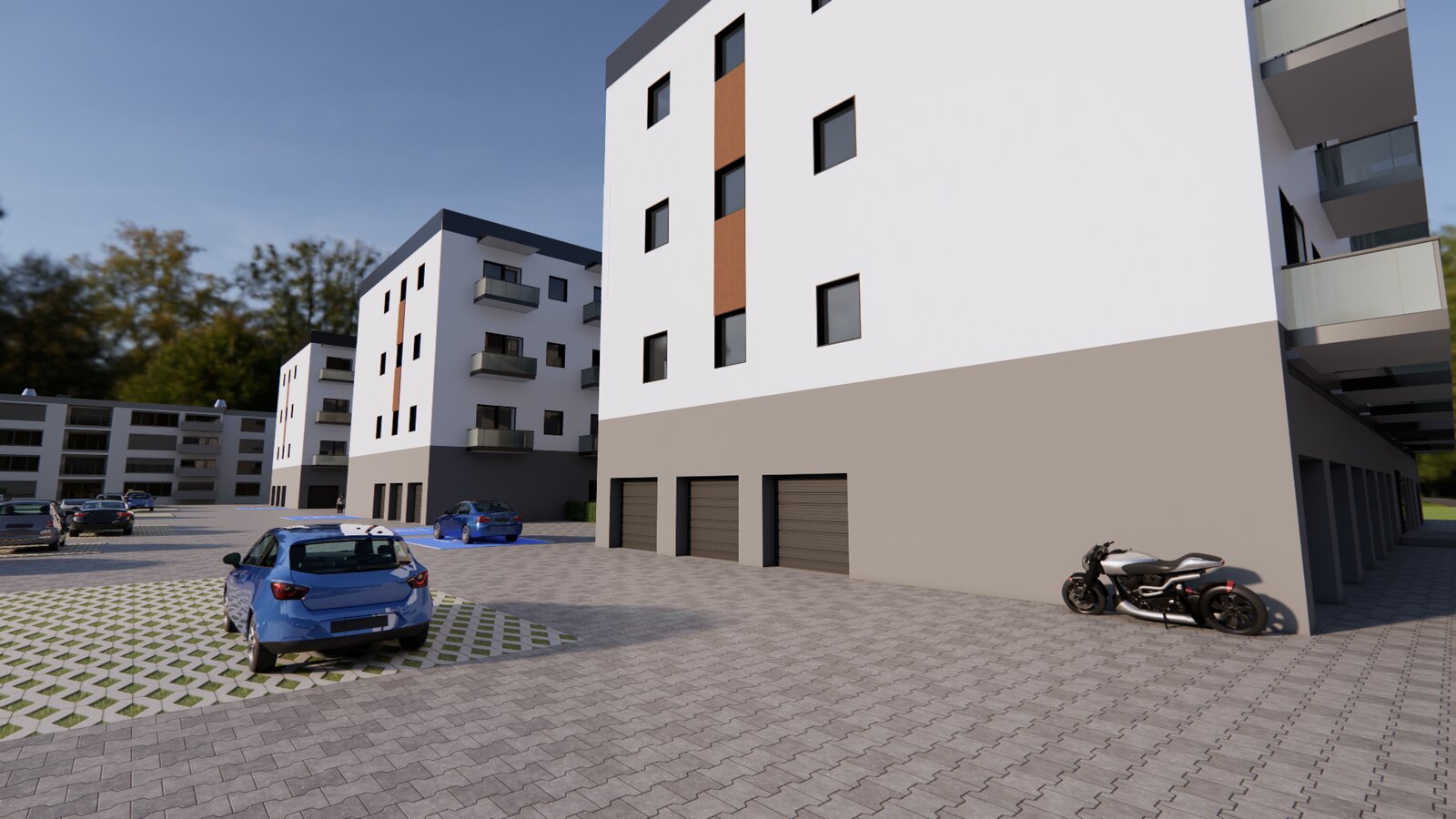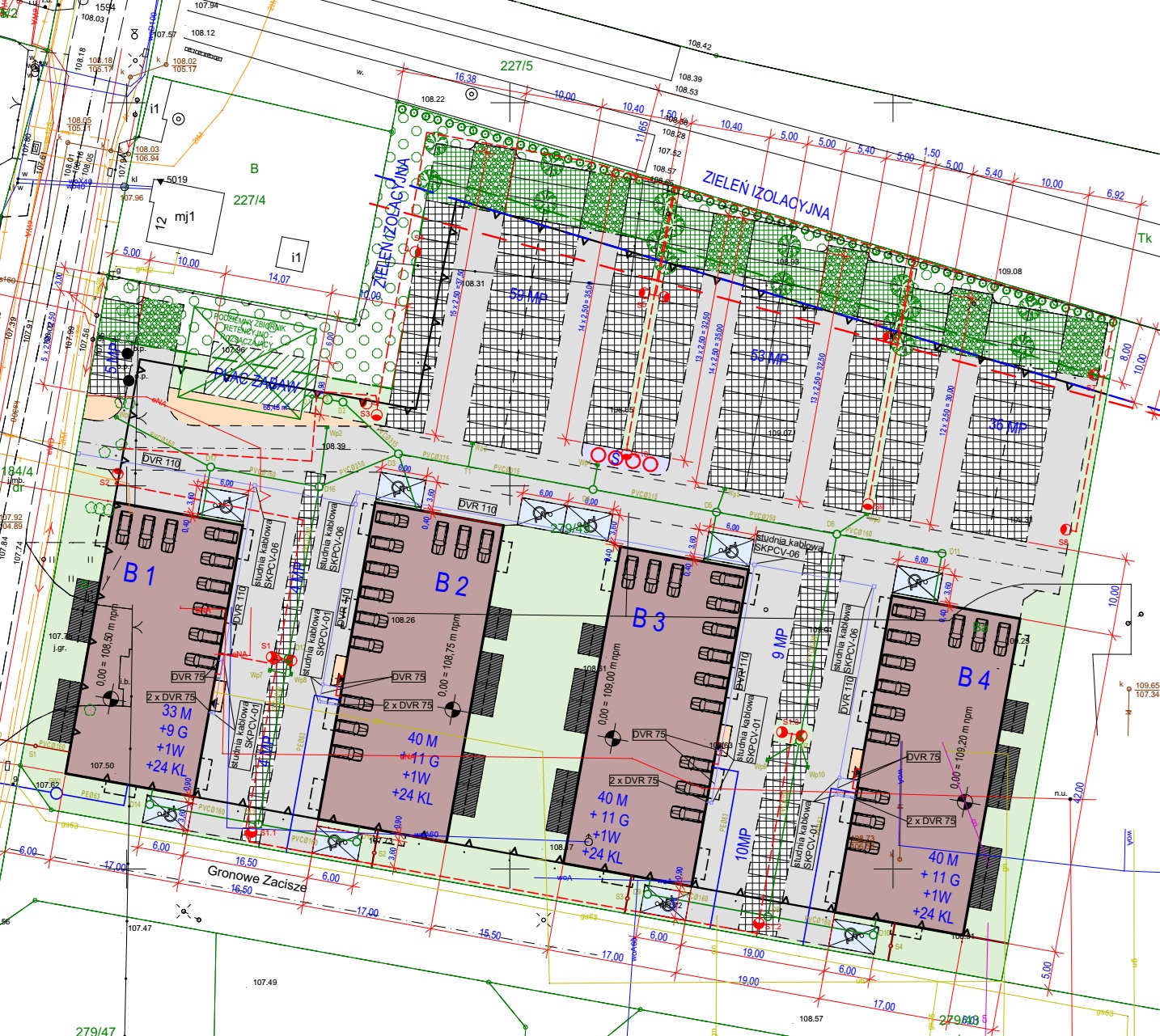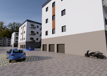 - Budynki ze skrytkami lokatorskimi, garażami oraz pomieszczeniem rowerowni/wózkarni
